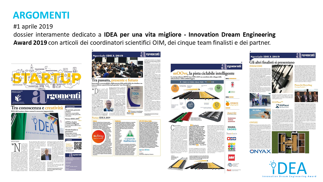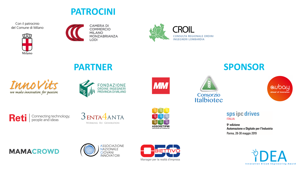 è un concorso promosso dall’Ordine degli Ingegneri della Provincia di Milano che ha come obiettivo la valorizzazione di progetti imprenditoriali innovativi che operano nell’ambito di una tematica specifica che viene scelta ogni anno sulla base di criteri che impattano sulle nostre competenze o sulla società che ci circonda. Nell’evento finale di premiazione, i finalisti presentano la loro idea/progetto davanti a una giuria composta dai vari partner dell’iniziativa, potenziali investitori e PMI.